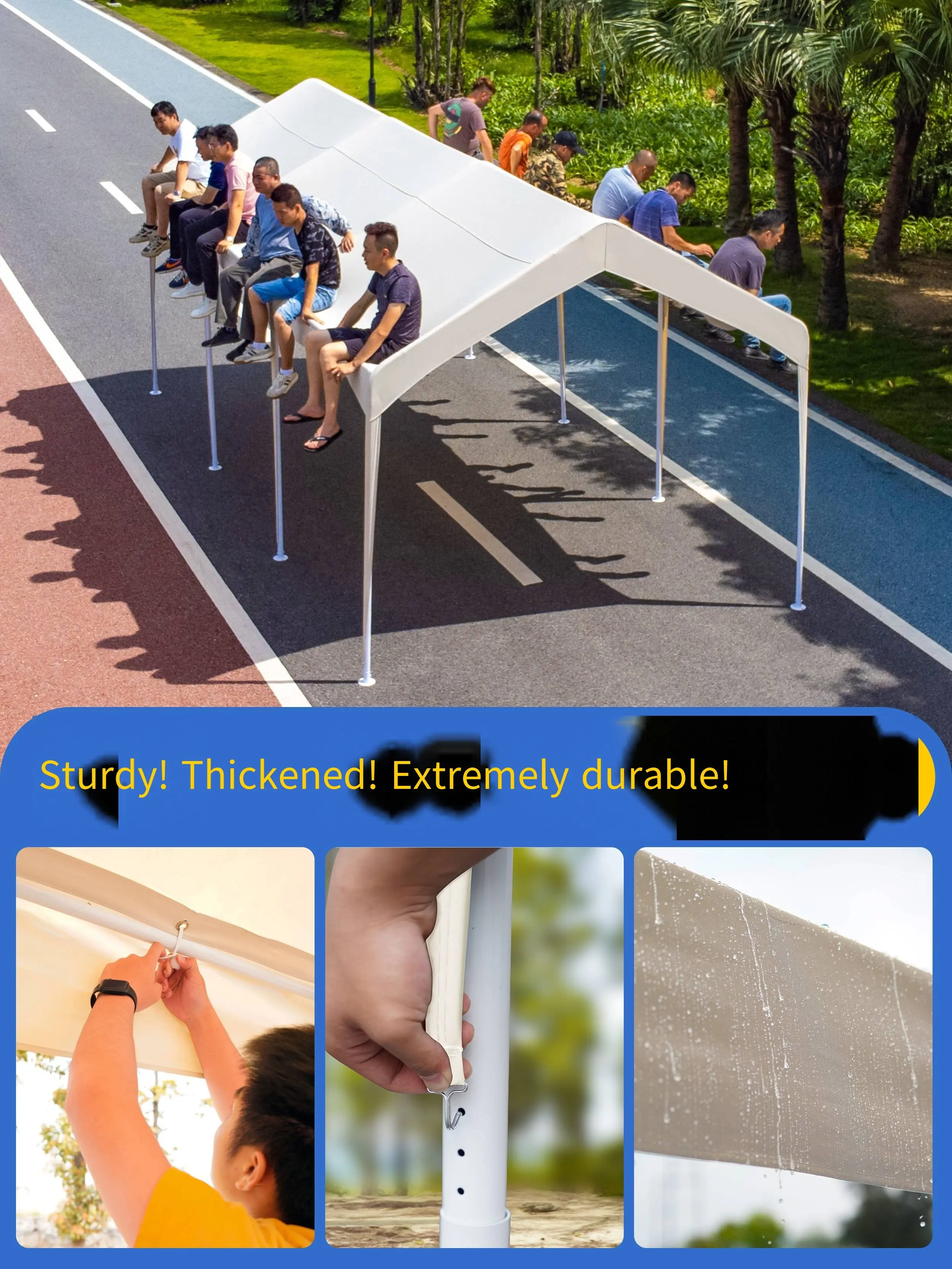 This portable car shelter offers a compact, temporary structure with key features that protect vehicles from sunlight, rain, and dust. Functionally, its lightweight and foldable design ensures effortless transportation and storage for immediate coverage. Ultimately, it provides an ideal solution for car owners seeking shelter without the need for permanent installations.
